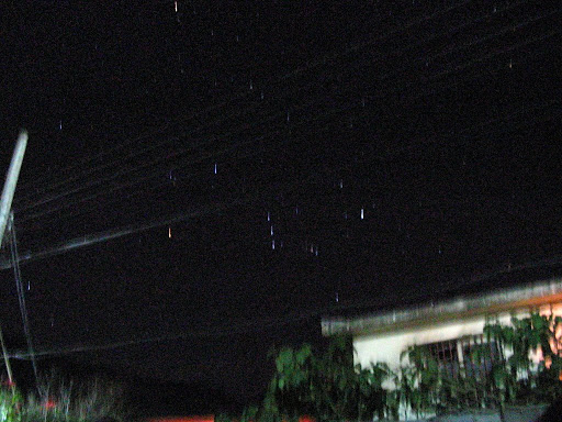 其實獵戶座不是十字形的,只是中間的三顆連線跟兩旁比較亮的星星看起來比較像十字,另外兩顆星星參宿五跟參宿六則一左一右,比較不明顯。