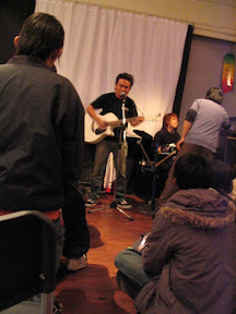以前我沒有在像是 Womb Bloc 這麼小的演展空間聽過音樂。不過這種感覺真的很棒。每個歌手都用不同的方式,感動底下的觀眾。貓貓虫表演的時候那種投入的神情,就像她把靈魂灌注到那首歌當中,接著輕輕的飄向我,傳遞感動。Easy 的方式就更直接,如果貓貓虫的感動是像冰塊加到紅茶裡面,慢慢的融合彼此的溫度,Easy 就是用他乾淨卻有爆發性的歌聲,直接震撼每個聽眾。郭紋汎更讚,真是把她的吉他發揮的淋漓盡致。而且聽到她的音樂,卻讓我想起洛娃伊,不知道為什麼,就有這種很奇怪的聯想…。