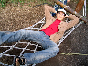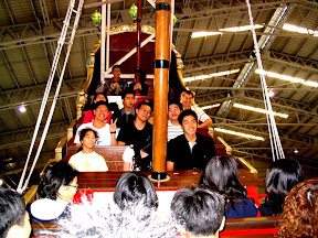 第二天,我們到九族文化村。兩大目的:玩、看櫻花。其實這一站還蠻好玩的,而且寒假學生票只要 350 元,又可以玩又有櫻花看,值回票價。我們玩的到底有多愉快勒?看看 KI 幼稚園向日葵小班的成員玩海盜船的表情跟動作就知道了: