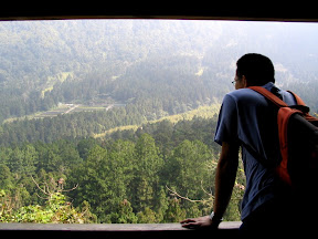 首先到溪頭走走。因為在今年內還有來過溪頭,對於這邊的一切並不陌生。只要走入溪頭的任何一條石舖小徑,甚至是尋常的馬路,都可以感受到森林深沈而緩慢的脈動,綿延無盡的柳杉林吐吶,與空氣混合而成的清新氣息,充斥任何角落;隨處可見台灣桫欏巨大的蕨類身影、羽狀葉片與捲曲的芽;因為舖滿碎木屑而質地柔軟的林間步道;當然還有無數著名的景點如大學池、溪頭神木、空中走廊。不過因為我的照相機外出取材後有點虛,所以中途就沒電了(囧!),照的比較少。