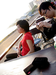 邀了宅哥跟小朋友,在高雄市區亂逛。剛開始先到了渡船廠旁邊的漁人碼頭,不知道是不是高雄人的宅哥竟然還帶錯路了,嘖嘖。後來我們就在漁人碼頭前面的露天座位待許久,大致上嘛,就是講些完全沒營養的話題。