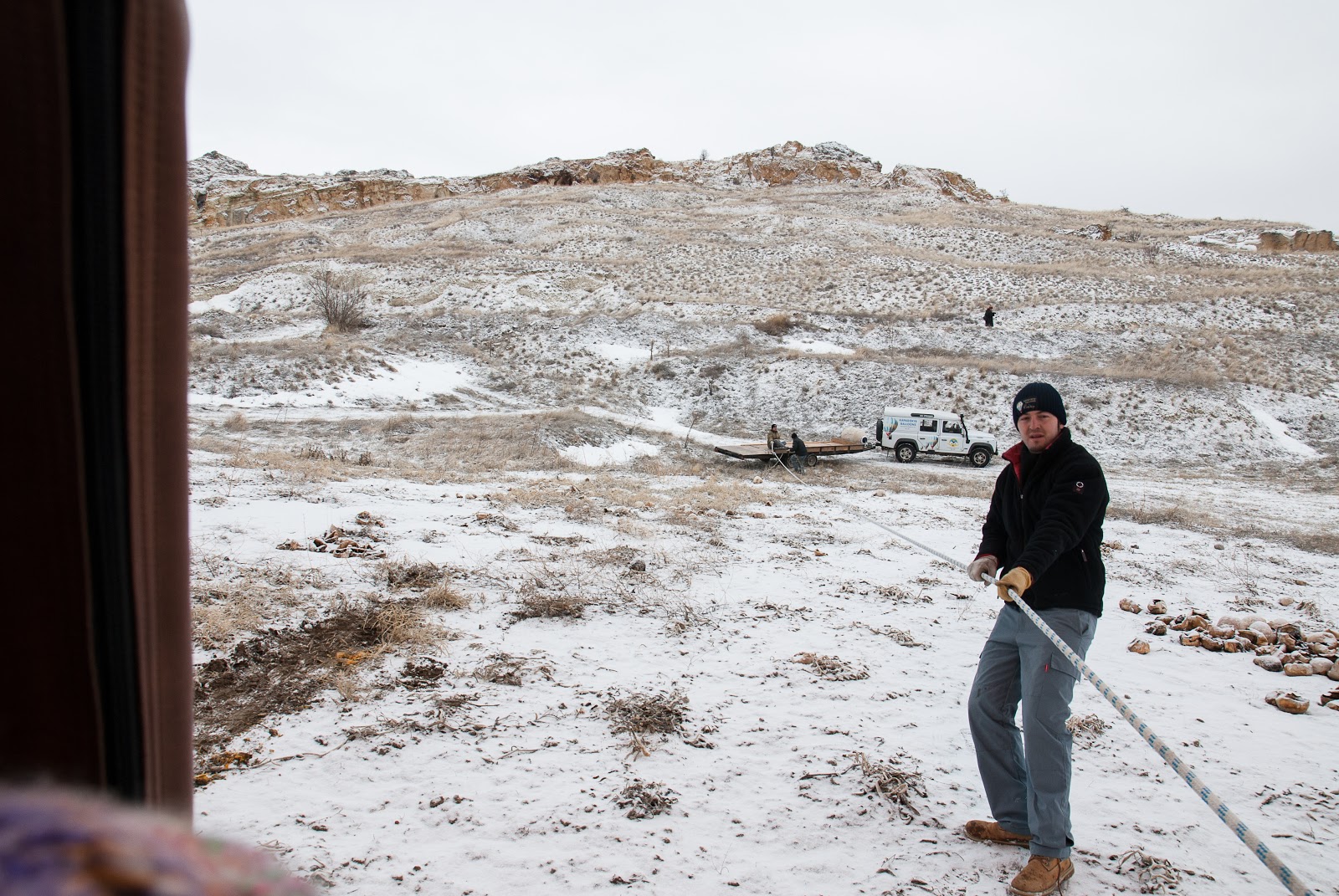 在熱汽球上面的一個小時感覺非常的快,好像才剛坐一下下就要下來了。在飛行員數度尋找降落地點後,我們終於是降到地面了。地勤人員開著拖車跟接駁車一路跟著我們,最後再度栓上繩索後,我們降落了。