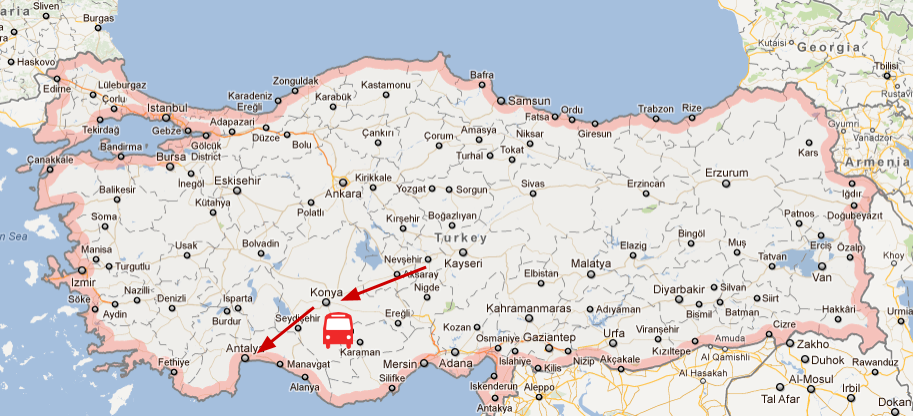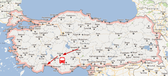 在很興奮的熱氣球之旅後我們在孔亞 (Konya) 下榻,並且在隔日到了安塔利亞 (Antalya)。