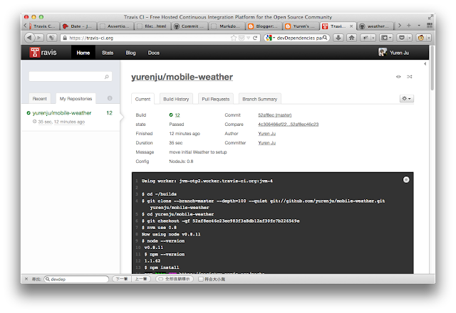 travis 是好幾個朋友跟我提過但是我都沒認真看怎麼玩,終於在上次的 Hacking Thursday 聽 kanru 跟 czchen 討論了幾番之後決定還是自己來試試看比較有感覺。
