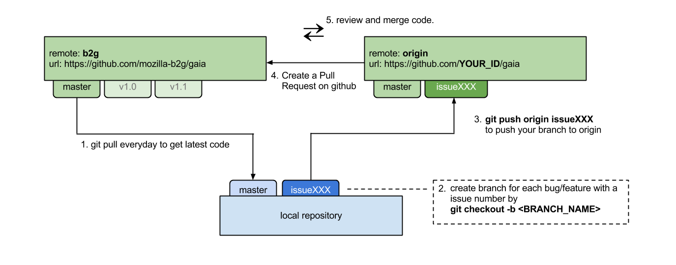 這是 Firefox OS - Gaia 開發時的 workflow,沒時間寫文章,先放張圖。
